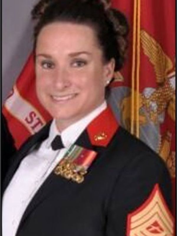 Served in the Marine Corps from 1996-2016 and retired at fhe rank of master sergeant. She began her career in the Marine Corps Band as a flute player and later made a lateral move to administration.